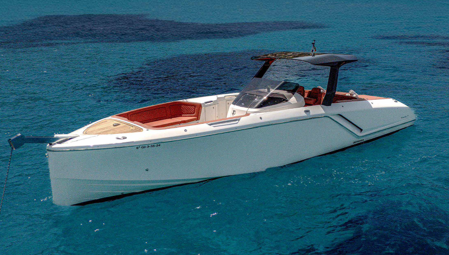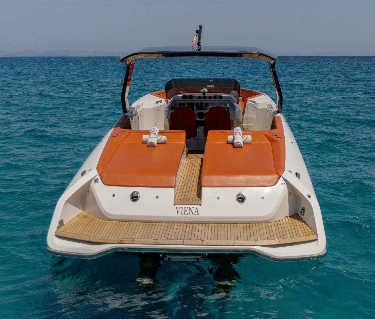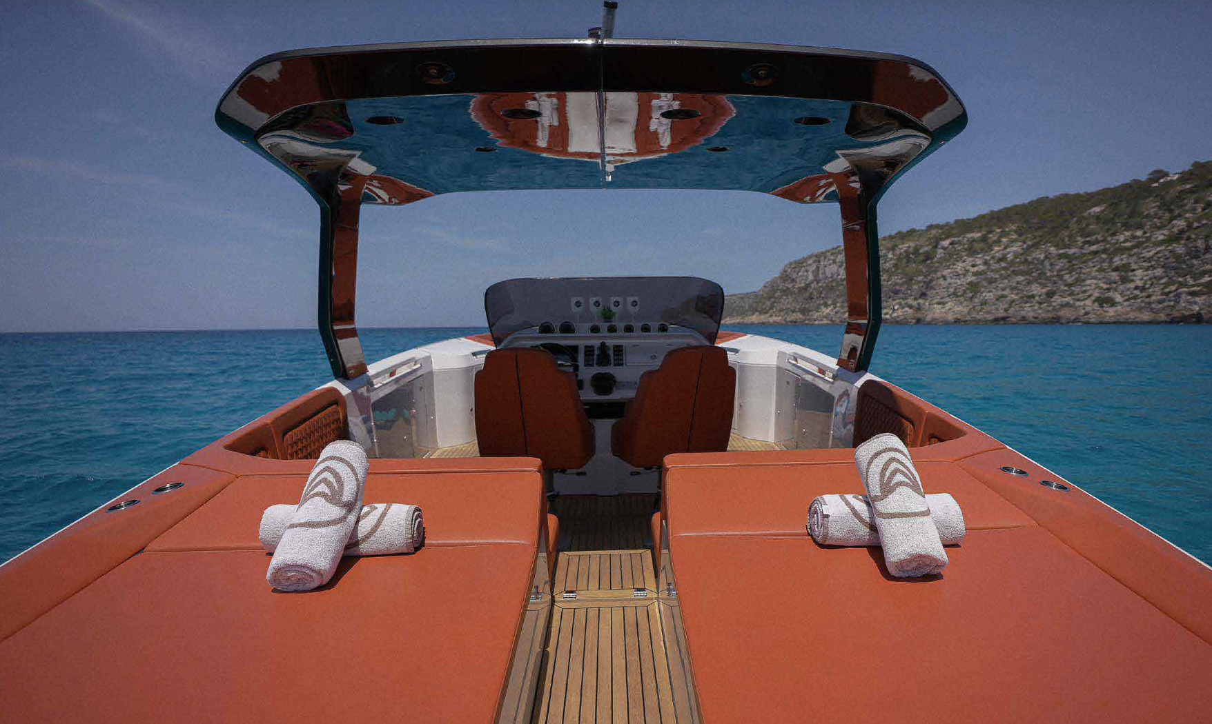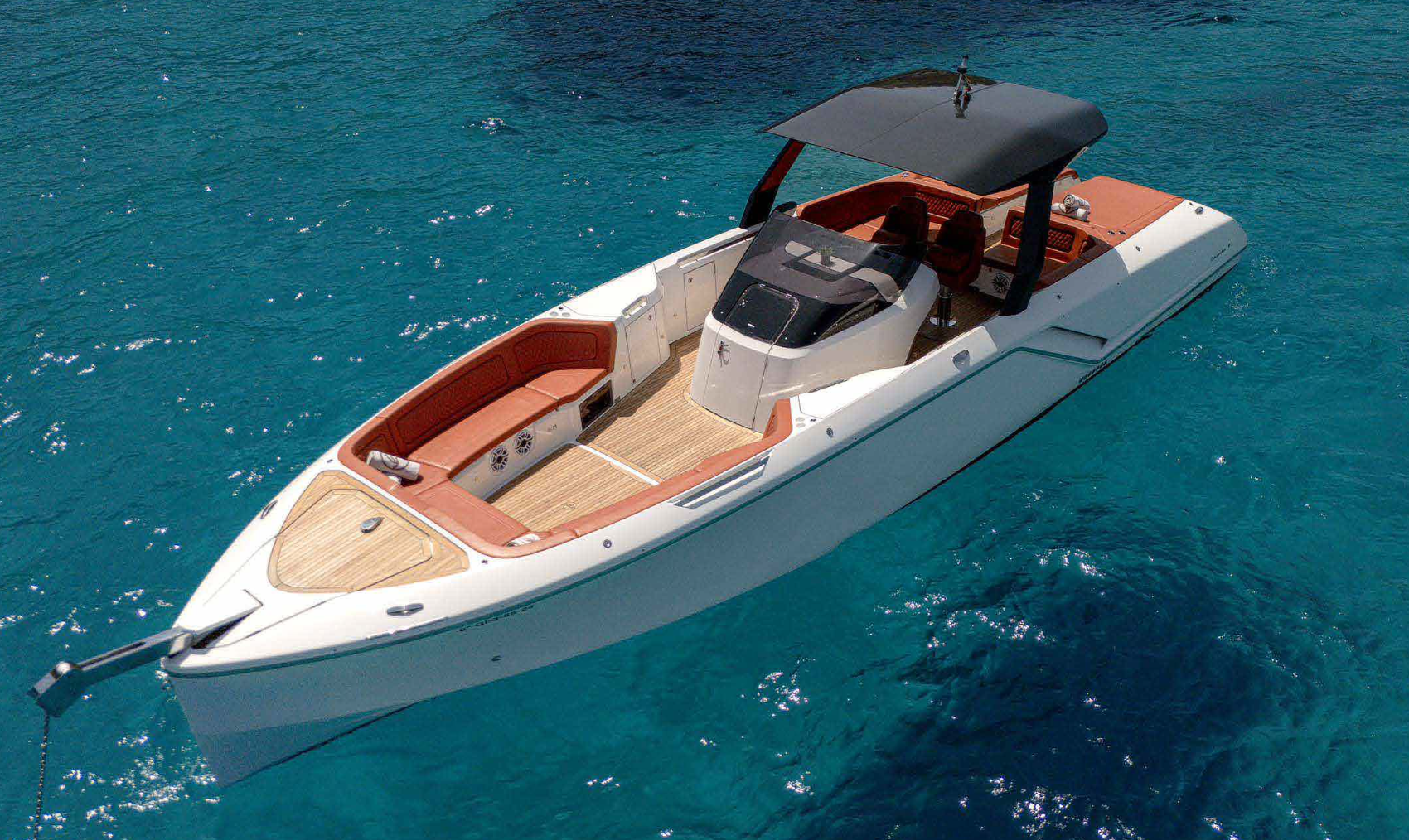 Designed for effortless open-air living, the 1212 Ghost Air offers generous lounging areas, refined finishes, and a smooth, confident ride exceeding 40 knots. Accommodating up to 11 guests and available from €2,199 per day, she is the ideal choice for those seeking contemporary elegance with a thrilling edge on the water.