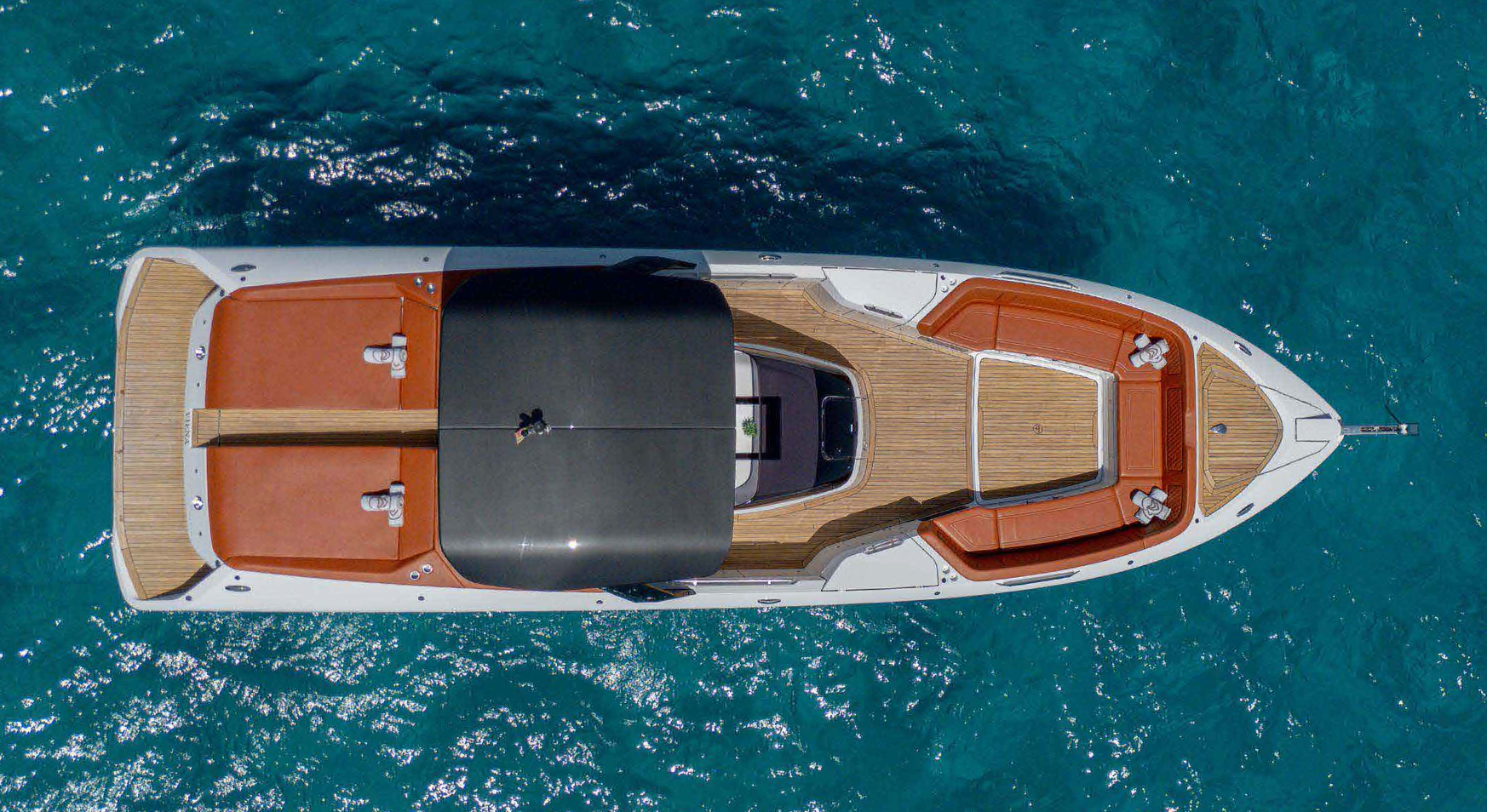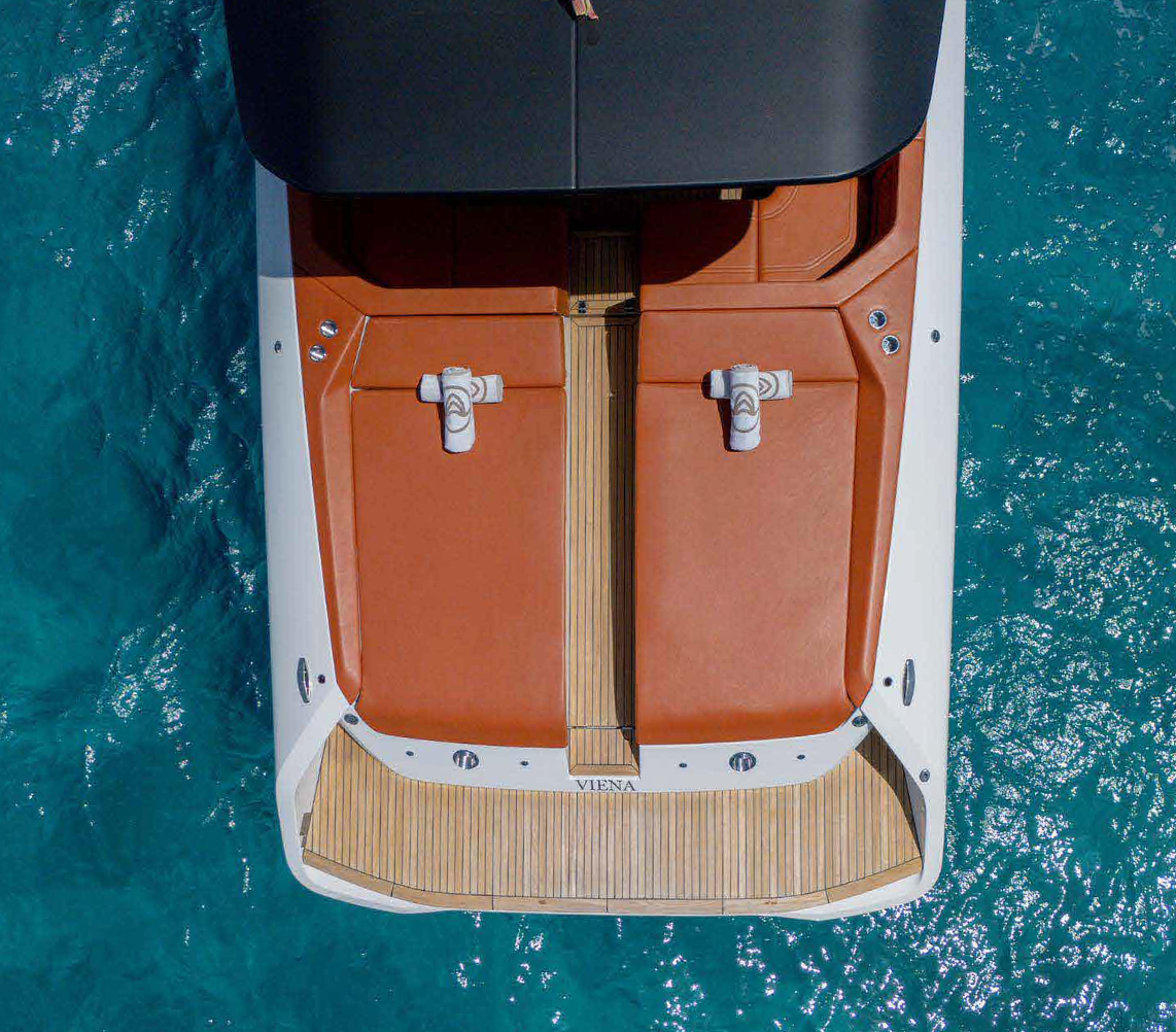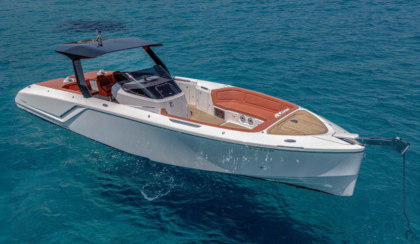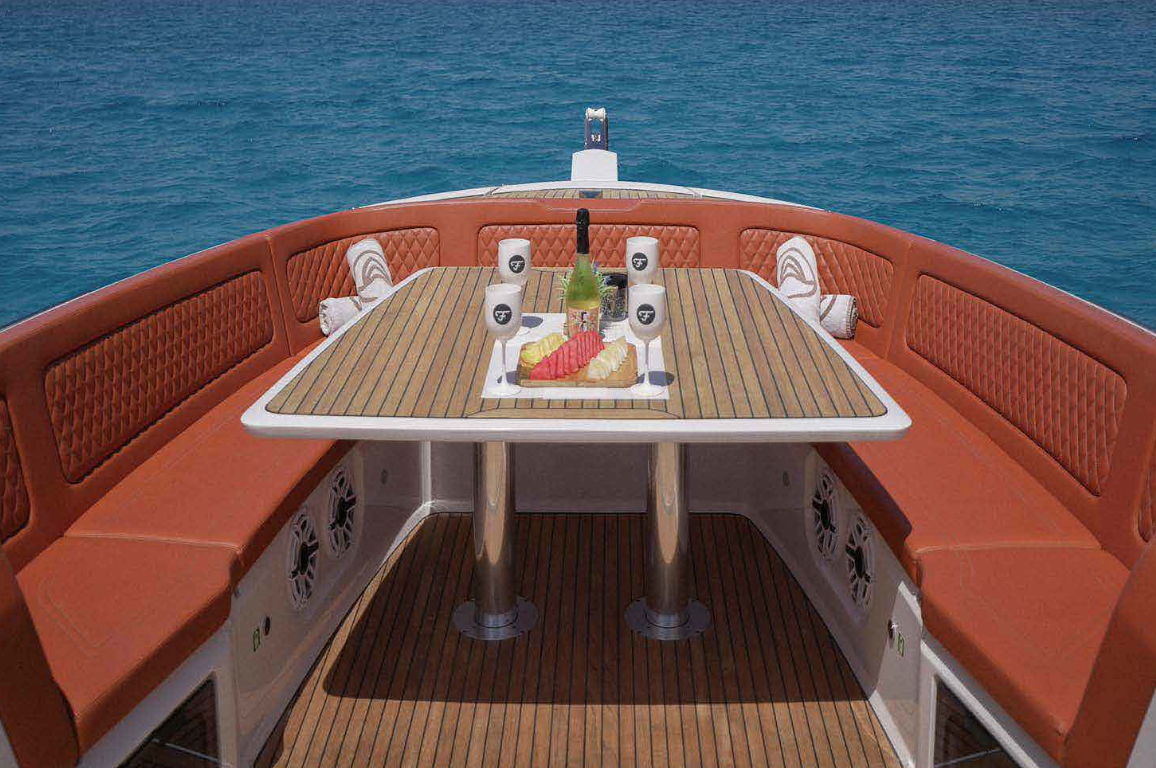 Designed for effortless open-air living, the 1212 Ghost Air offers generous lounging areas, refined finishes, and a smooth, confident ride exceeding 40 knots. Accommodating up to 11 guests and available from €2,199 per day, she is the ideal choice for those seeking contemporary elegance with a thrilling edge on the water.
