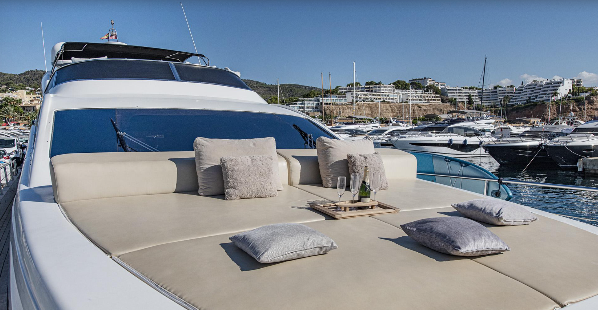 Step into refined Italian luxury aboard the Abacus 70, a stunning 22-metre yacht that effortlessly combines power, elegance, and generous space. Based in the prestigious marina of Portals Nous — just minutes from Palma — she is perfectly positioned to explore Mallorca’s spectacular southern and southwestern coastline in style.